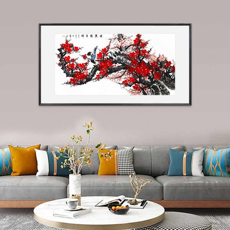 《凌寒独自开》写意花鸟画横幅八平尺 实木画框装裱