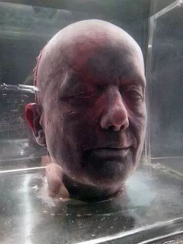 看到这副血腥的作品编也真是醉了,只有疯子般的收藏家才能懂疯子般的艺术家。这件作品还有一个更早的版本,于1991年被艺术品藏家查尔斯•萨奇以15万美元入手。不幸的是,萨奇手中的这一版本作品因为前妻的不小心将其从冰柜中拿出,导致这颗“血色冰脑袋”在高温中融化,15万美元也就此打了水漂。