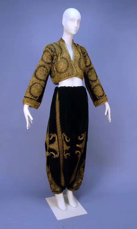 奥斯曼帝国的传统服饰通常是灯笼裤加上衣或长袍,宫廷多用深色丝绒为底,上绣金色立体纹饰的服饰,华丽而装饰感强。