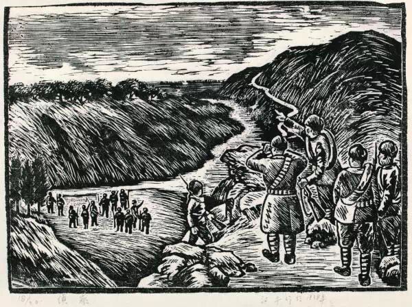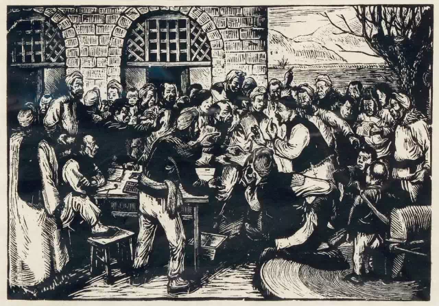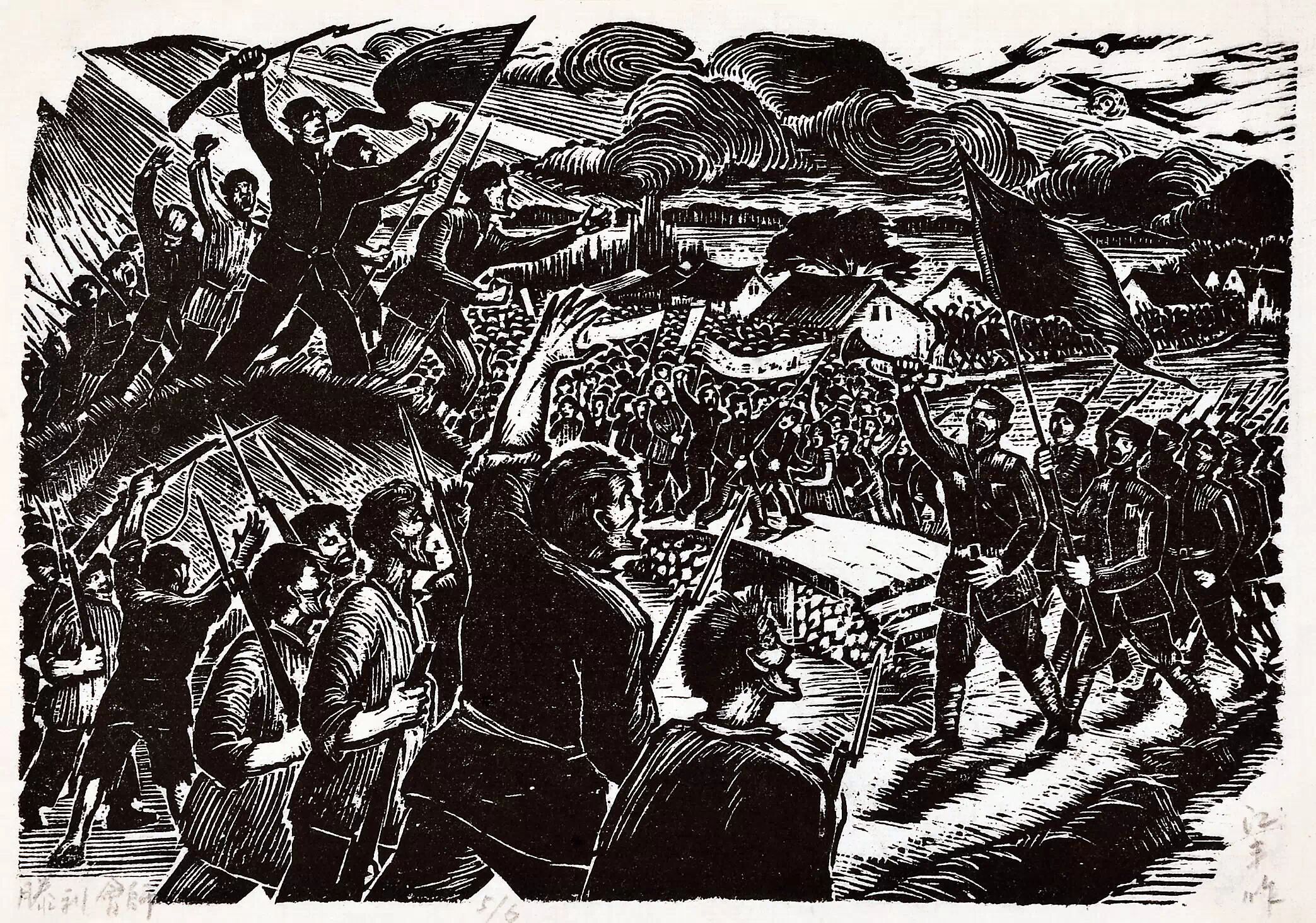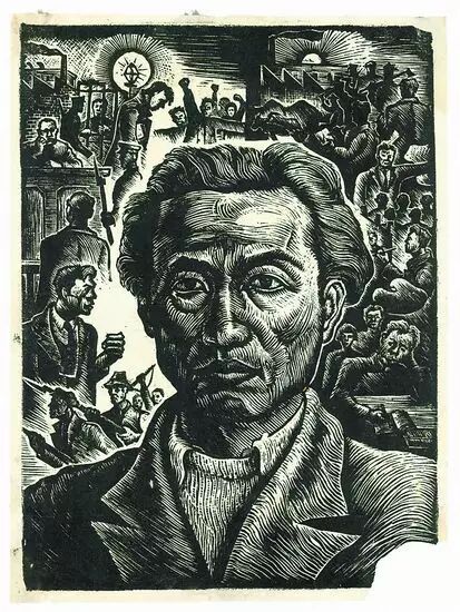 江丰(1910年—1982年)原名周熙,笔名高岗、固林,江烽,介福。祖籍上海。擅长版画、美术理论、美术教育。1931年参加上海左翼美术活动,筹建上海一八艺社研究所,继而参加鲁迅举办的木刻讲习所。1938年赴延安,负责编辑《前线画报》,后任鲁迅艺术学院美术部主任。1949年当选中华全国美术工作者协会副主席,1951年任中央美术学院副院长。1957年被错划为“右派”,1979年冤案得以平反,出任中央美术学院院长,当选中国美术家协会主席。
