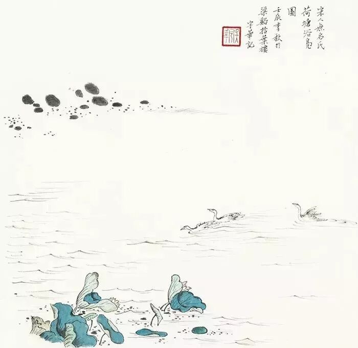 拟宋人《荷塘浴凫图》 35.4×34.3cm