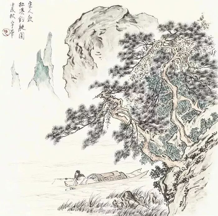 拟宋人《松溪钓艇图》 35.4×34.8cm